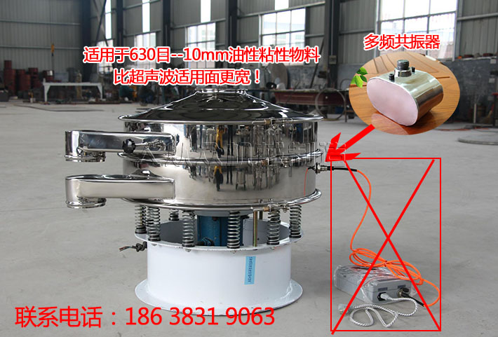 易結(jié)球,有粘性60目以細(xì)物料現(xiàn)在多采用超聲波清網(wǎng)。由于超聲波為高頻低振幅(固定頻率),部分物料存在堵網(wǎng)、卡孔、結(jié)球無(wú)法破球等多種問(wèn)題,無(wú)法使物料徹底篩分。比60目粗的物料超聲波無(wú)法使用(60目篩網(wǎng)絲徑為0.125mm,篩網(wǎng)漲緊后超聲波的振幅無(wú)法通過(guò)振環(huán)使篩網(wǎng)產(chǎn)生共振)。