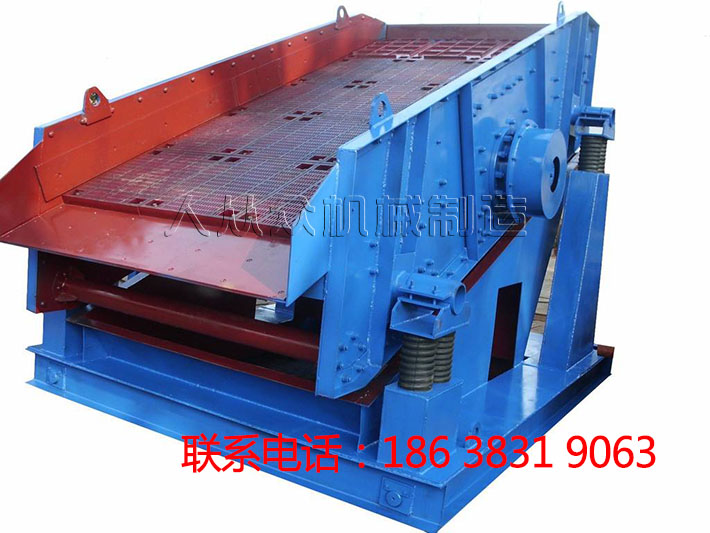 鐵礦粉直線篩(直線振動篩)工作時在兩個振動電機(jī)的帶動下產(chǎn)生激振力,迫使篩面上的鐵礦粉跟隨垂直于兩電機(jī)的軸上做直線的跳躍運動,根據(jù)透篩率的理論,有很大比例小于篩孔的礦石粉透過篩孔進(jìn)到下一個篩分階段或者作為篩下物料被運輸出來。