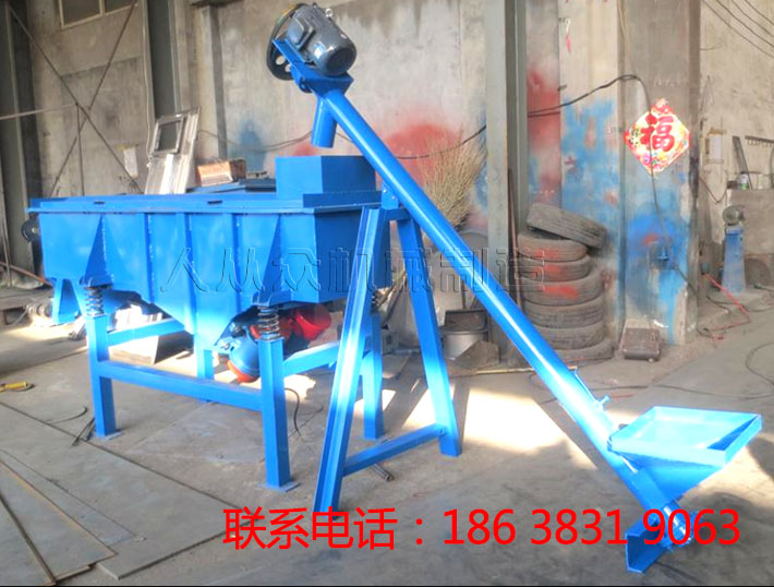 工作時候先啟動機器,運轉(zhuǎn)平穩(wěn)之后,從入料口倒入枸杞,枸杞隨著振動向前躍動前進,行進至大小合適的網(wǎng)孔便完成透篩進入屬于自己的等級,通過振動流進出料口,最終流入受料裝置,完成篩分,可搭配上料機使用,如下圖。