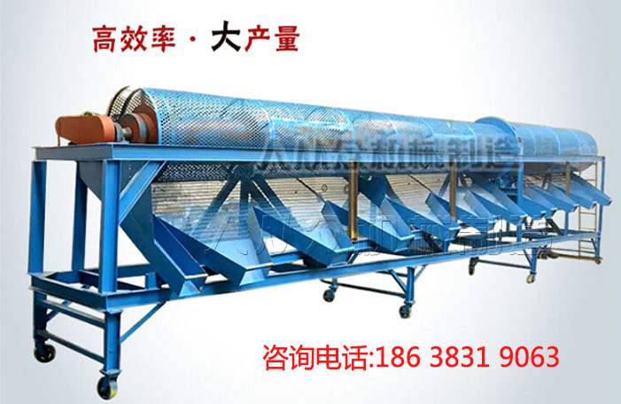 土豆分級(jí)篩可以完成土豆大小分級(jí)的工作,它的使用和維護(hù)非常簡(jiǎn)單,維修次數(shù)少,使用壽命長(zhǎng),是土豆/山藥豆挑選替代人工非常優(yōu)質(zhì)的機(jī)器。咨詢熱線:18638319063(微信同號(hào))
