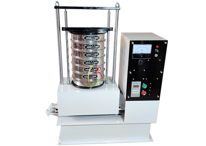 磁懸浮式振動篩通電后電磁裝置形成磁場,起振裝置懸浮在磁場中間,形成了上下高頻振動,再通過底部托盤傳導(dǎo)到安放在托盤上的一套從粗到細(xì)排列的篩具上,使得實(shí)驗(yàn)篩、分樣篩中的物料上下、左右往返振動及運(yùn)動,使每層實(shí)驗(yàn)篩、分樣篩內(nèi)只留下相同粒度的物料,達(dá)到了不同粒度的分離。